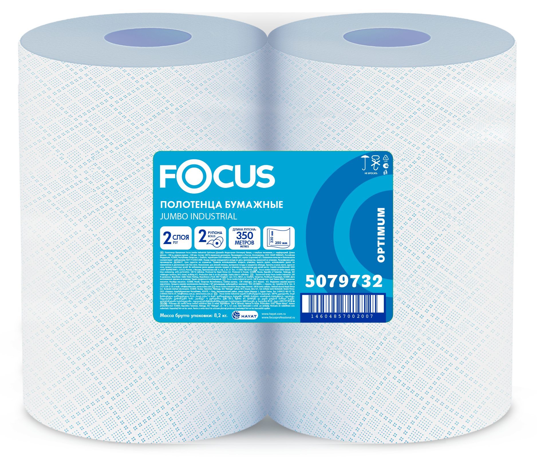 Артикул - 5079732 Индустриальное полотенце Focus Economic Choice белое, 2 слоя - 2 рулона по 350 м, изготовленно Фокус