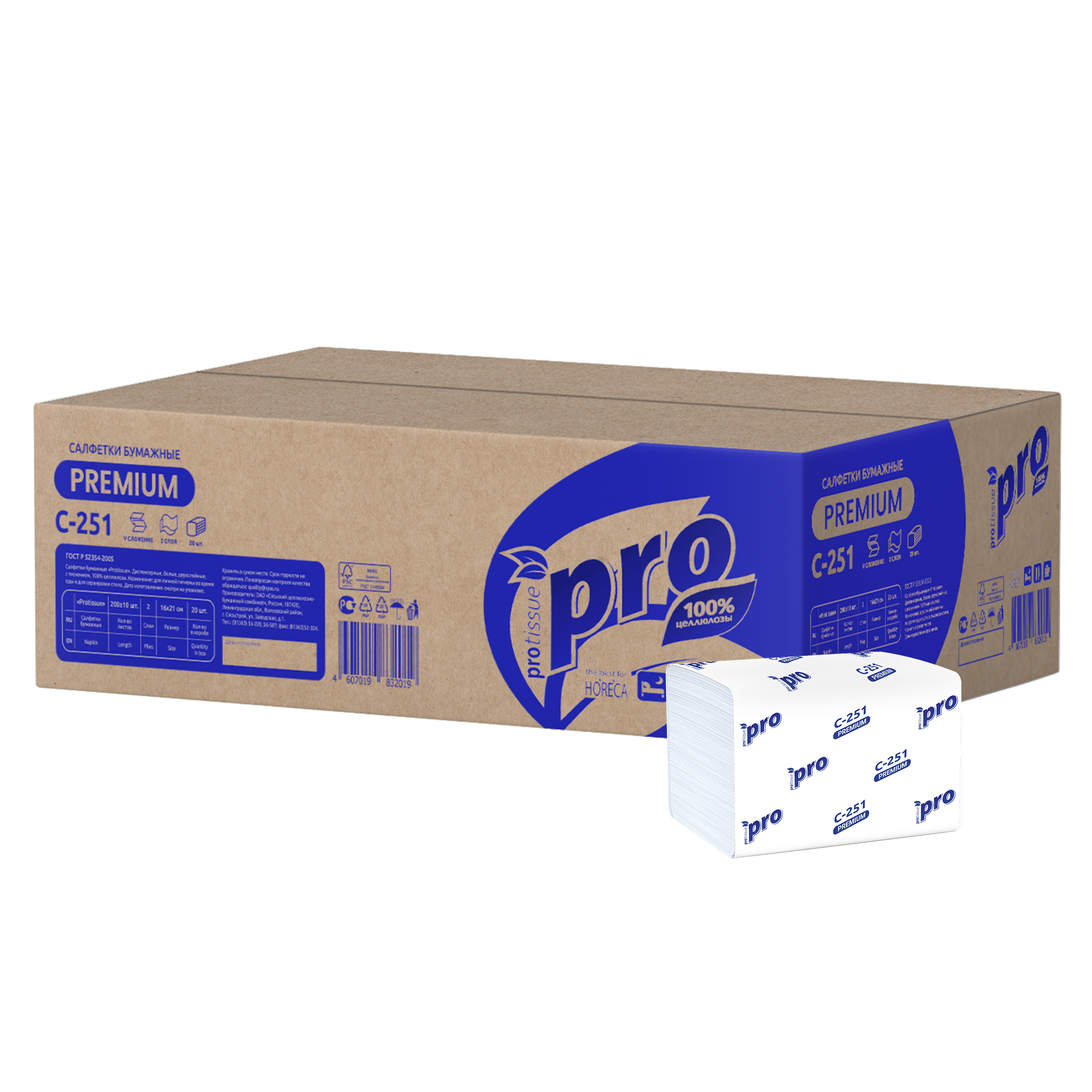 C251 Салфетки бумажные PROtissue - 20 упаковок по 200 листов