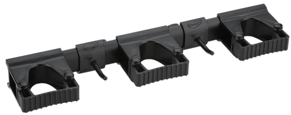 Гигиеничное модульное настенное крепление – это удобный способ хранения уборочного инвентаря и инструментов в любом месте предприятия. Рейка-рельс надевается слева или справа на 4 стенных дюбеля. После этого зажимы и крюки защелкиваются на рейке и удерживаются на месте благодаря специальным «насечкам» на ней. Это не позволяет отдельным частям ездить из стороны в сторону. На рейку можно поместить от 1 до 10 модулей. (макс. 5 зажимов или 10 крюков). Зажим способен удерживать инструменты диаметром 28-33 мм. На крюк можно повесить предметы весом до 3 кг. В комплект входят 3 зажима и 2 крюка. Модули и рейку легко разбирать для очистки и замены.